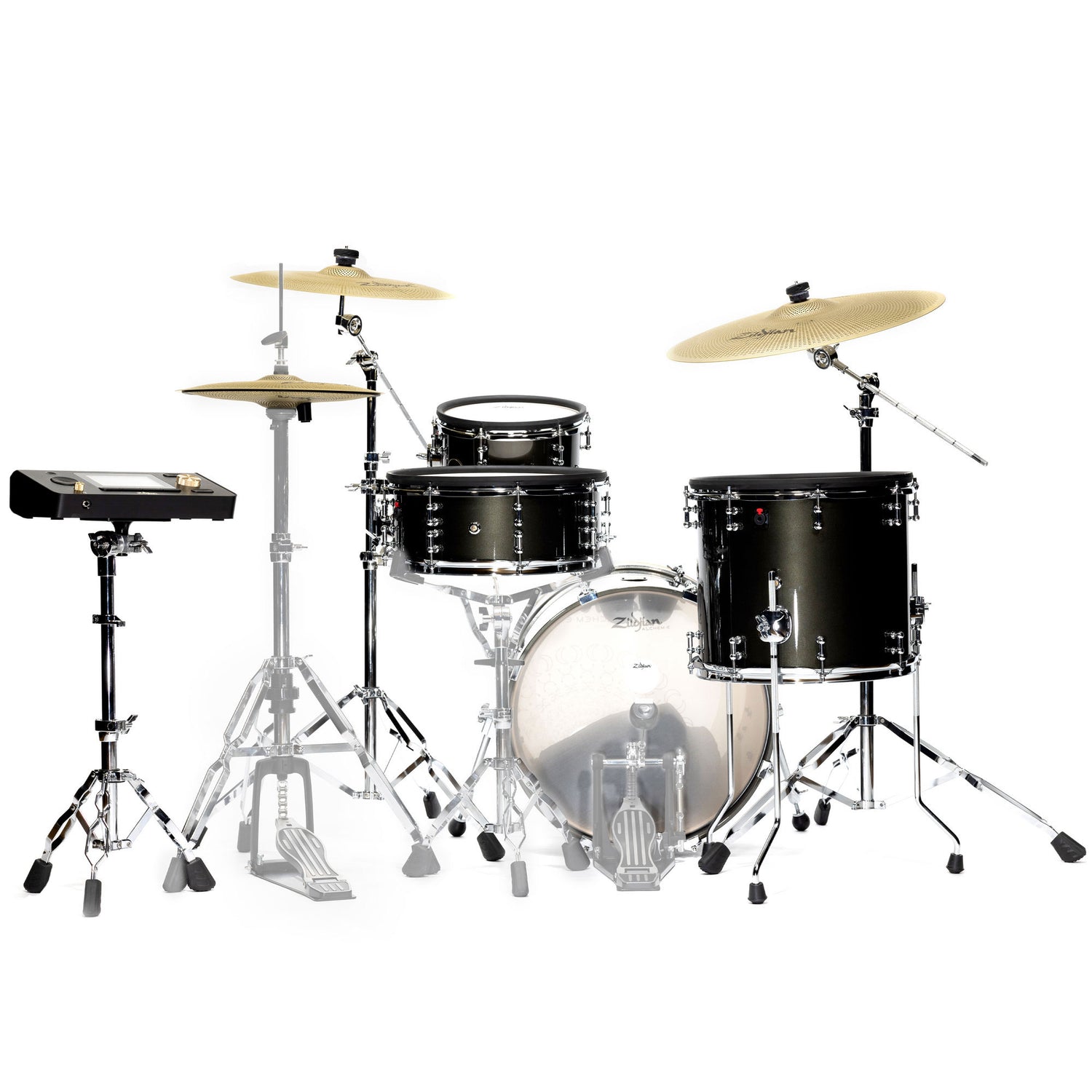 • Revolutionary E-FAMILY Cymbals - 14” HiHats / 16” Crash / 20” Ride. All feature built-in Zildjian™ Trigger System, 3-zone playability, and 360° touch choking.