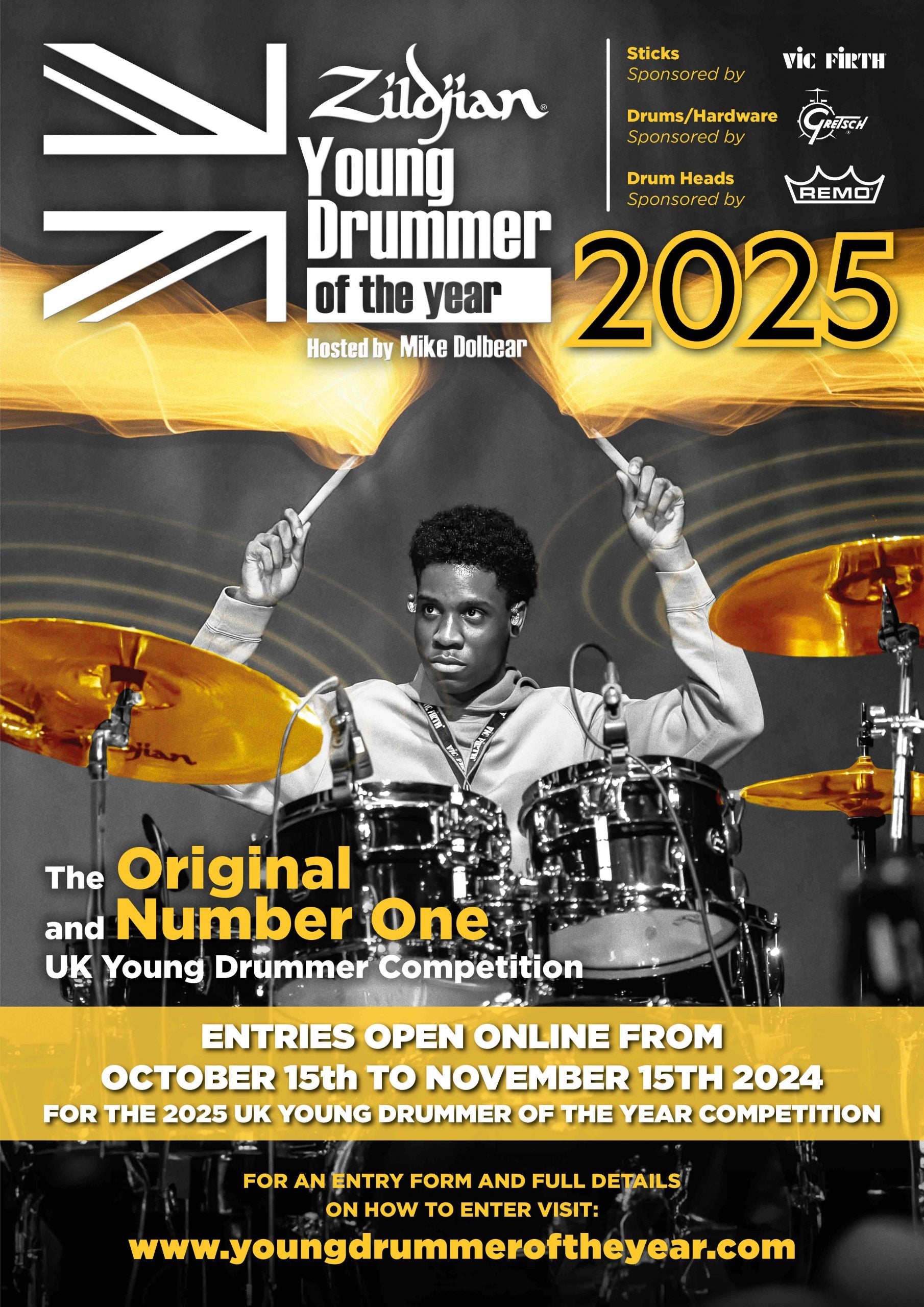 Founded in 2002, Young Drummer of the year offers contestants (16 and under) a platform to highlight their drumming talent on a national and international stage. Since the competition’s inception, the event has seen tremendous growth, attracting an ever-increasing number of entries and seeing the very best in terms of drumming talent. The U.K. Young Drummer of the Year competition finals are held in February at a central location, with the winner receiving a trophy, prestigious title, and often, drum and cymbal endorsement deals.