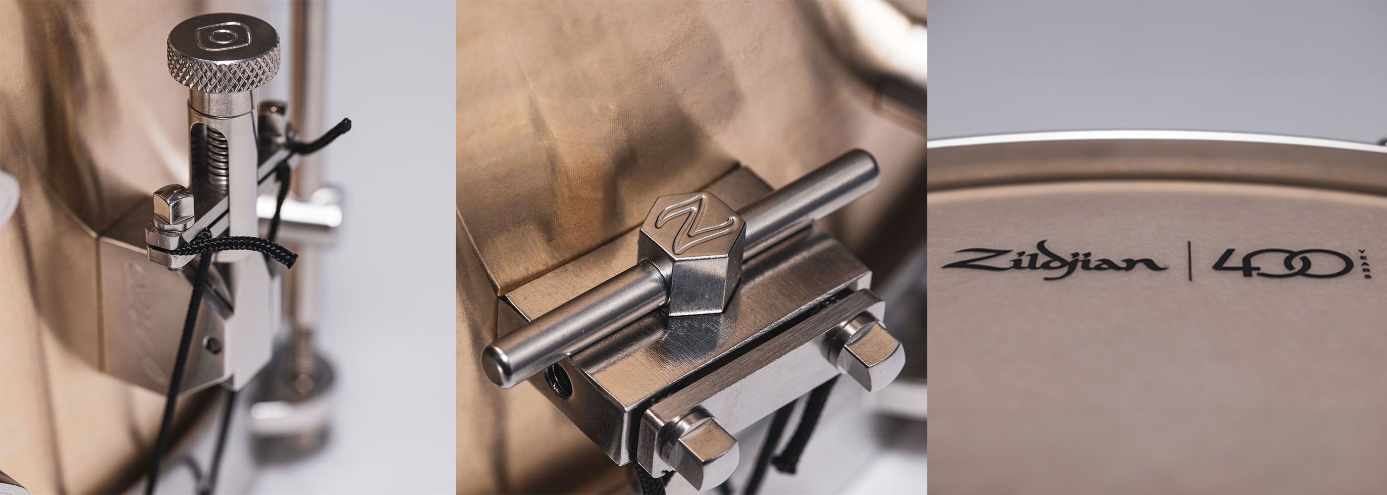 The raw shell casting is precision machined to exacting specifications, with a final shell thickness of 5mm. The batter side features a round over edge with a 30-degree inner cut, while the snare side edge utilizes a sharper 45- degree geometry to maximize crispness and sensitivity. The 8” wide snare beds feature a hybrid of modern (wide and shallow) and classic (deep pocket) designs, with the effect of showcasing the shell’s unique character, while also allowing more centered articulation than cast bronze shells are typically capable of.